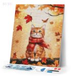 Deimantinė mozaika „Jauki rudens katė“, 40×50 cm