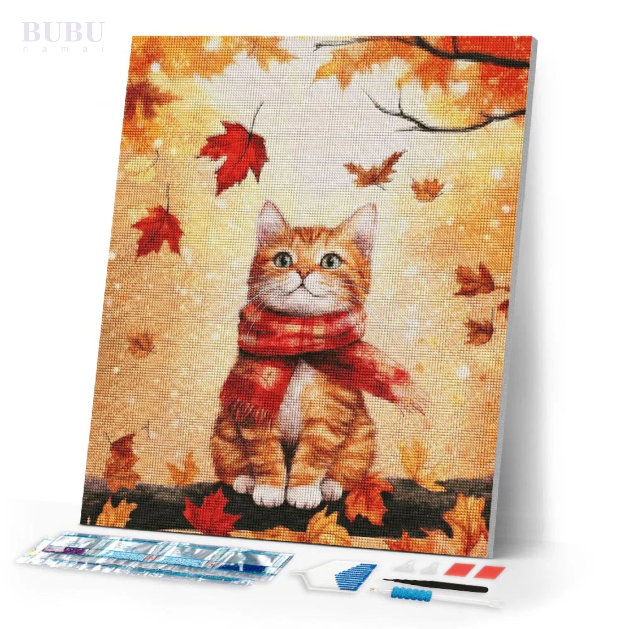 Ši šilta ir žavinga deimantinė mozaika perteikia tikrą rudens jaukumą. Paveiksle pavaizduota miela katė su raudonu šaliku, sėdinti tarp krentančių auksinių lapų. Švelnios spalvos, šilta šviesa ir ramus katės žvilgsnis sukuria jaukią, raminančią atmosferą, kuri puikiai tiks rudens sezono nuotaikai namuose.