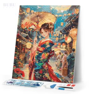 Deimantinė mozaika „Mergina su kimono žibintų festivalyje“, 40×50 cm