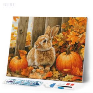 Deimantinė mozaika „Triušis tarp moliūgų“, 40×50 cm