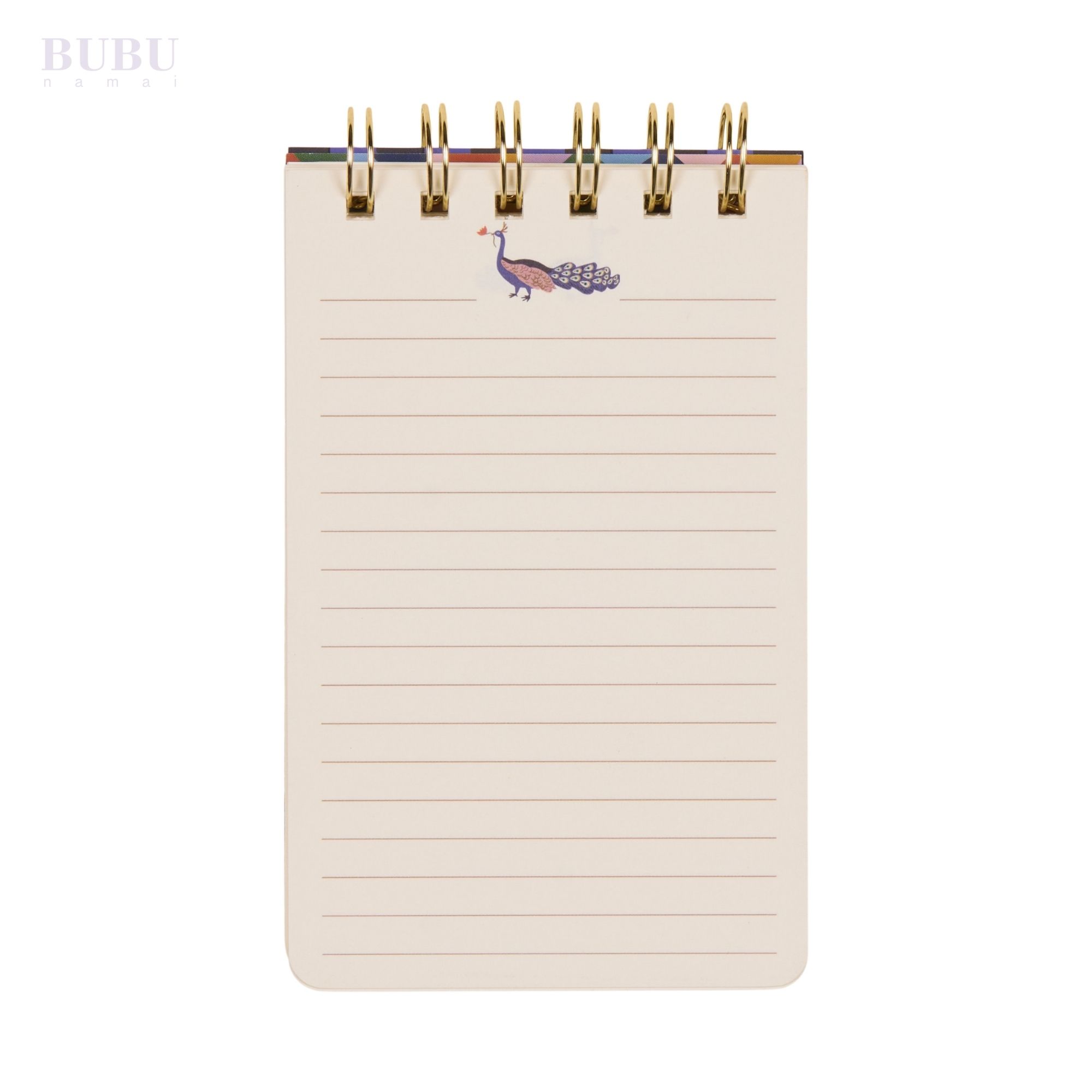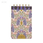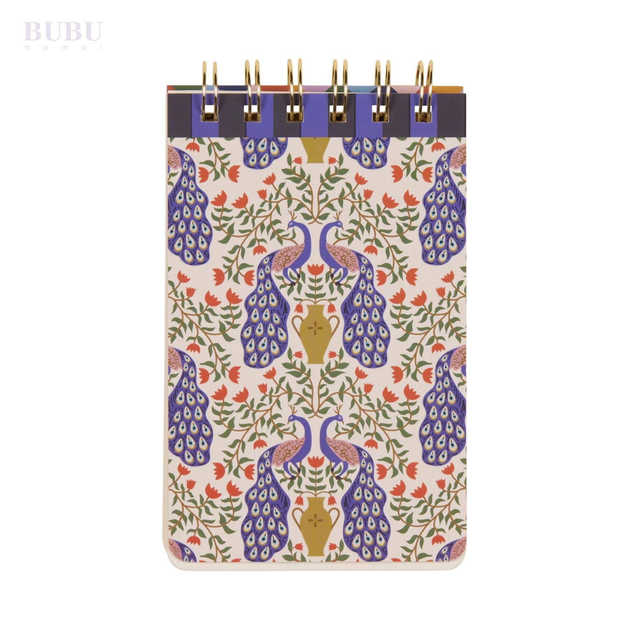 Elegantiška ir kompaktiška spiralėmis įrišta užrašų knygutė, papuošta išraiškingu, simetrišku povo ir augalų motyvu. Tvirta įrišimo spiralė leidžia patogiai naudotis kasdien, o stilingas dizainas paverčia ją ne tik praktišku, bet ir akį traukiančiu aksesuaru. Puikiai tinka trumpiems užrašams, idėjoms ar kaip subtili dovana raštinės reikmenų mėgėjams.