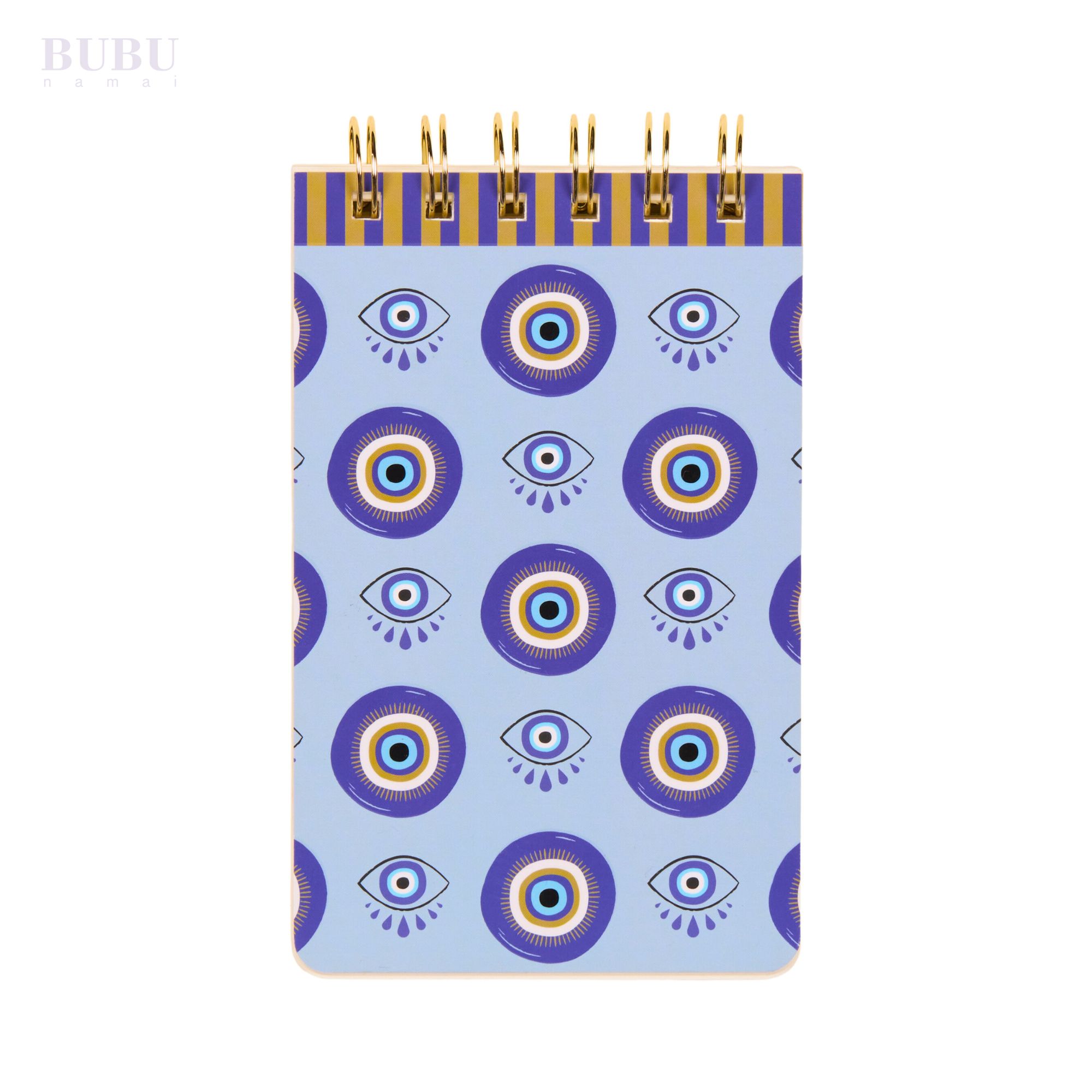 Stilinga užrašų knygutė, dekoruota ikoniniu „Sėkmės akies“ simboliu, kuris siejamas su apsauga ir sėkme. Švelniai mėlynas fonas ir ryškūs mėlynos bei auksinės spalvos akcentai suteikia dizainui modernumo ir mistikos. Kompaktiškas dydis leis knygutę patogiai nešiotis, o spiralinė įriša užtikrina patogų naudojimą kasdien. Puikus pasirinkimas tiems, kurie mėgsta prasmingus ir stilingus aksesuarus.