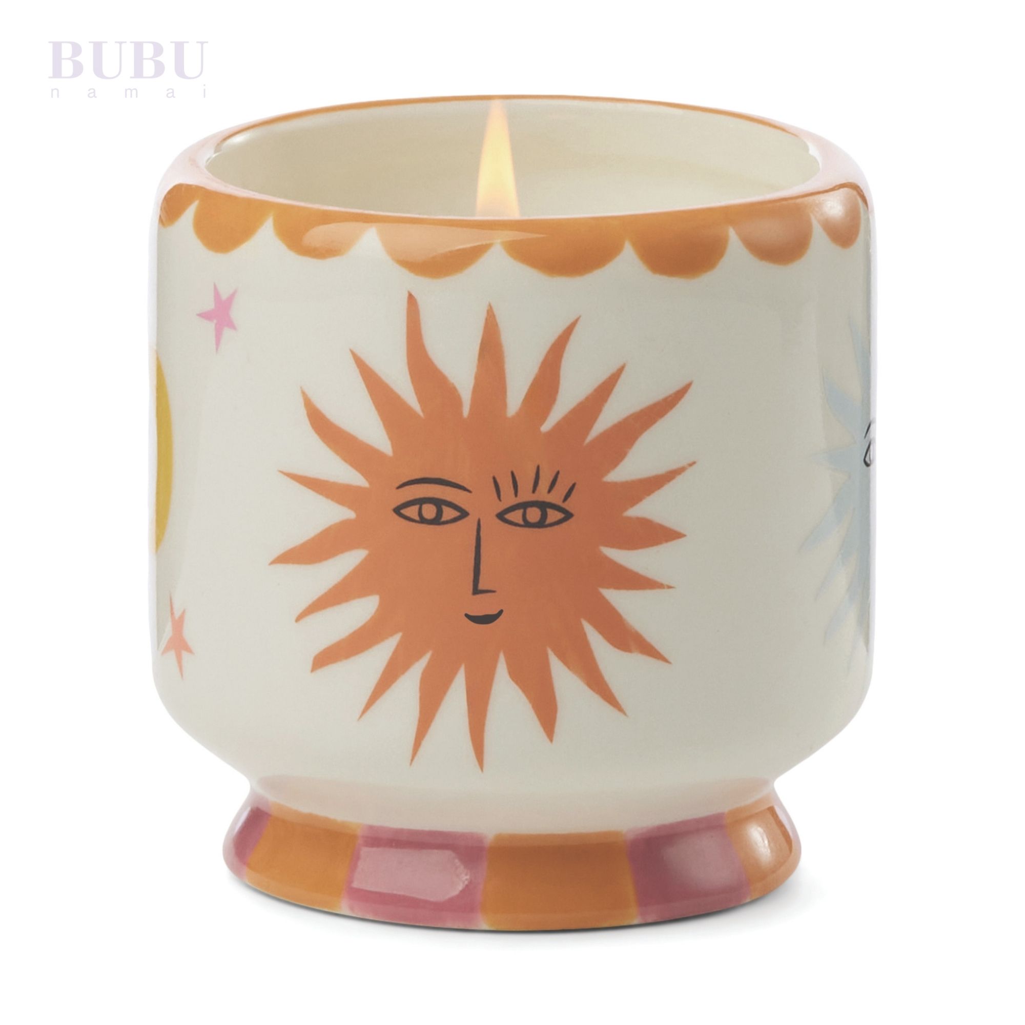 Keramikinė kvepianti soju vaško žvakė „Saulėteka“ – tai Viduržemio jūros vasaros įkvėpta interjero detalė, kuri namams suteikia gaivos, spalvų ir nuotykių nuotaikos. Ryški, Maroko motyvais dekoruota 226 g (8 oz) keramikinė talpa yra kruopščiai rankomis tapyta, todėl kiekviena žvakė – unikali ir turinti amatininkišką charakterį.