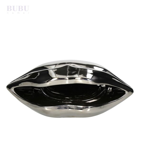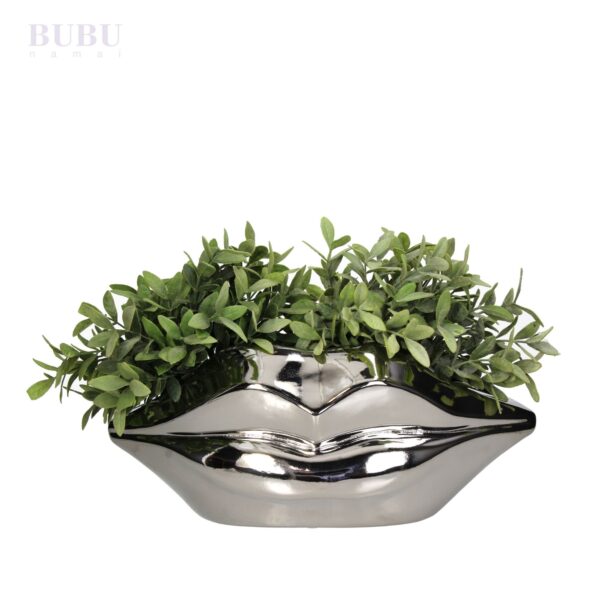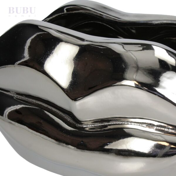 Ieškote originalios ir prabangios interjero detalės? Bubunamai siūlo išskirtinio dizaino sidabrinį keramikinį vazoną, primenantį elegantišką lūpų formą. Blizgi, veidrodinė danga suteikia šiam vazono modeliui ypatingo rafinuotumo, todėl jis taps ne tik praktiška augalų talpykla, bet ir stilingu dekoro akcentu.