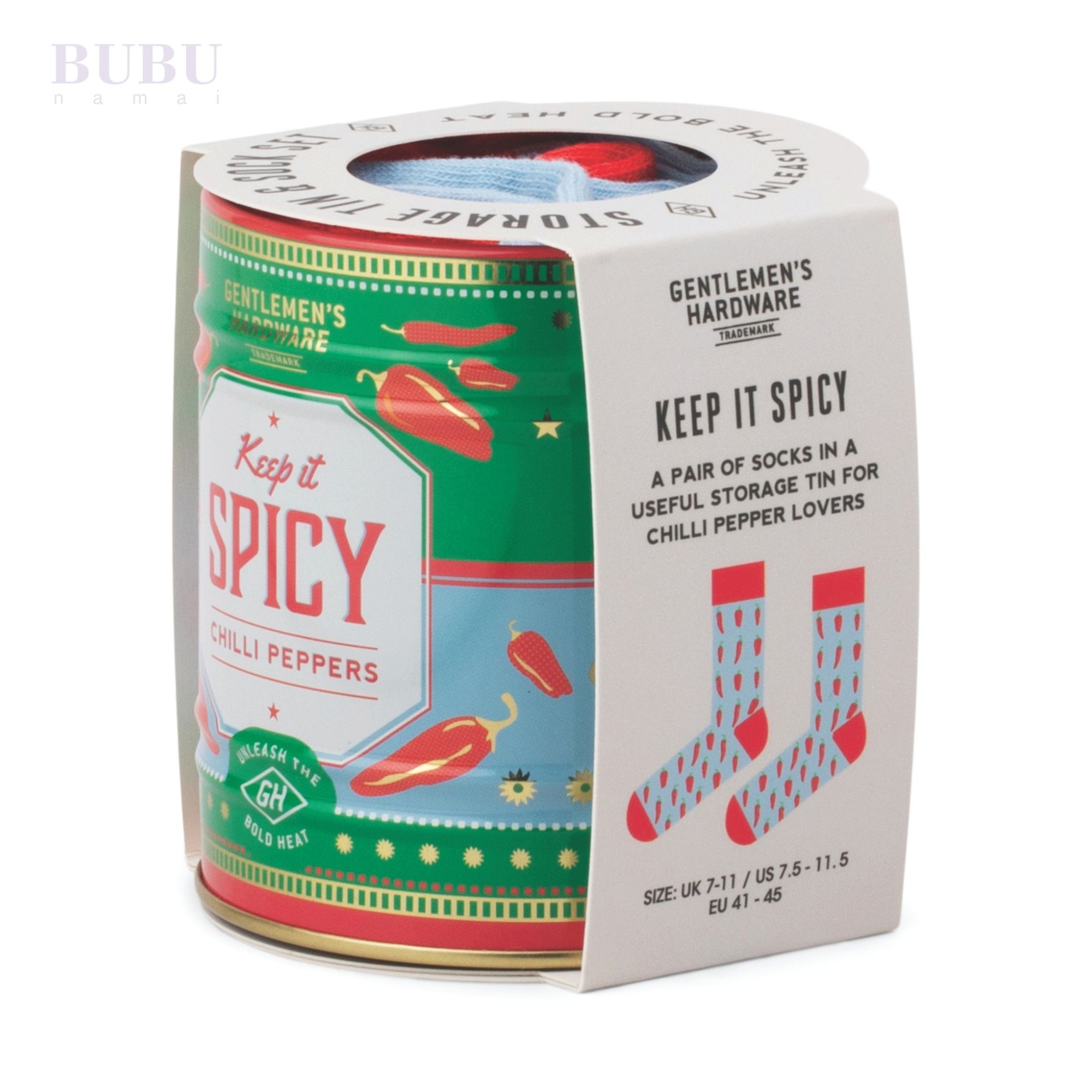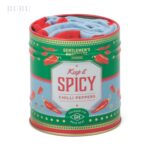 Kojinės skardinėje „Čili pipirai“ – puikus pasirinkimas aštrių pojūčių ir gero humoro mėgėjams. Rinkinį sudaro ryškios, čili pipirais dekoruotos kojinės, supakuotos stilingoje, prieskonių skardinę primenančioje dėžutėje.