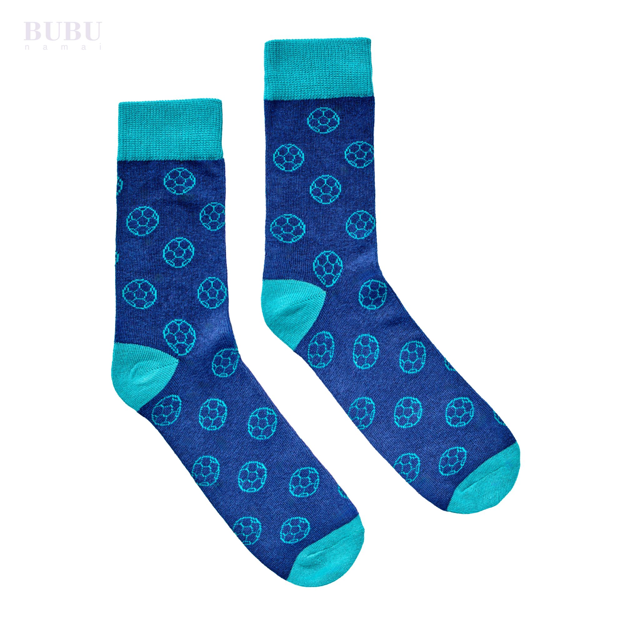 Sportiškas ir stilingas kojinių rinkinys skardinėje, skirtas futbolo gerbėjams ir aktyvaus laisvalaikio mėgėjams. Tamsiai mėlynos kojinės su futbolo kamuolių motyvais ir gaiviomis turkio spalvos detalėmis suteikia dinamišką įvaizdį, o minkštas ir patogus audinys užtikrina komfortą visą dieną.