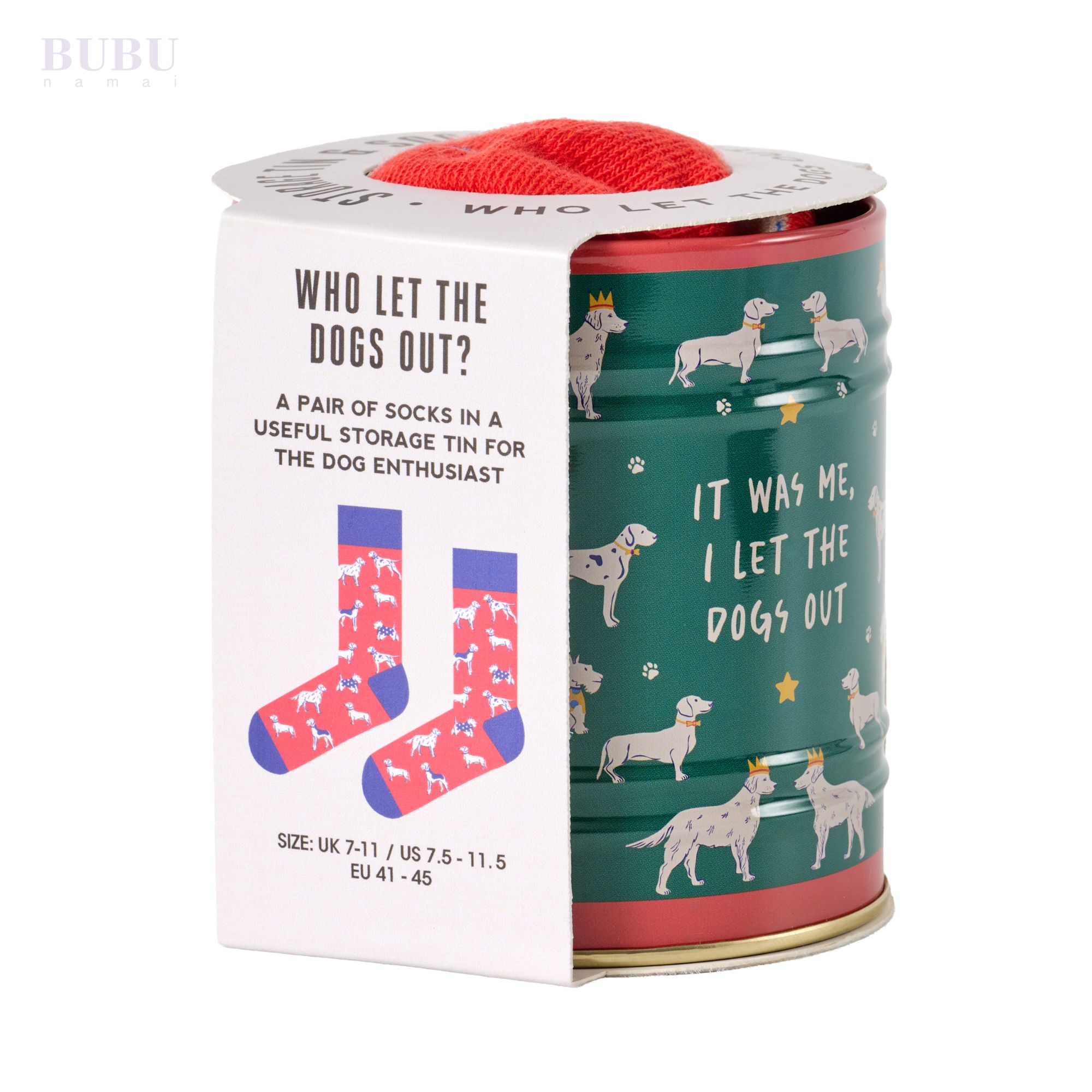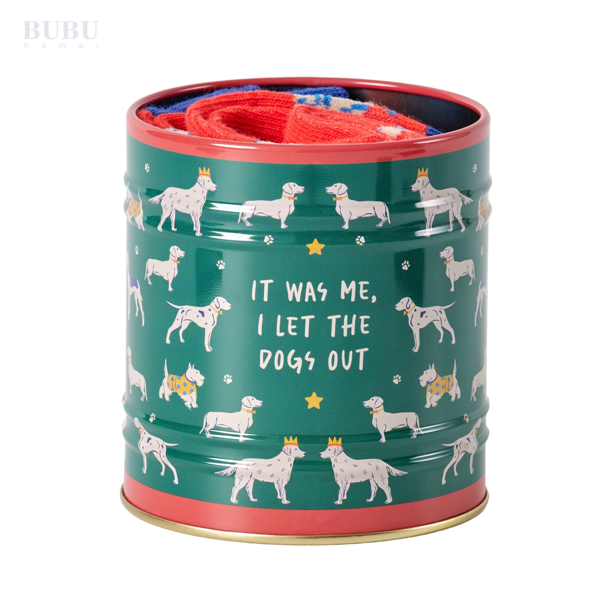 Žaismingas ir nuotaikingas kojinių rinkinys skardinėje, skirtas šunų mylėtojams ir gero humoro gerbėjams. Ryškiai raudonos kojinės, dekoruotos linksmų šuniukų motyvais, suteikia spalvų ir džiaugsmo kasdieniam įvaizdžiui, o minkštas, patogus audinys užtikrina komfortą visą dieną.