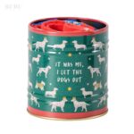 Stilinga metalinė skardinė paverčia šį rinkinį paruošta dovana be papildomo įpakavimo. Skardinę galima naudoti pakartotinai smulkmenoms laikyti, todėl tai ne tik linksma, bet ir praktiška dovana visiems, kurie dievina šunis ir šypseną keliančius aksesuarus.