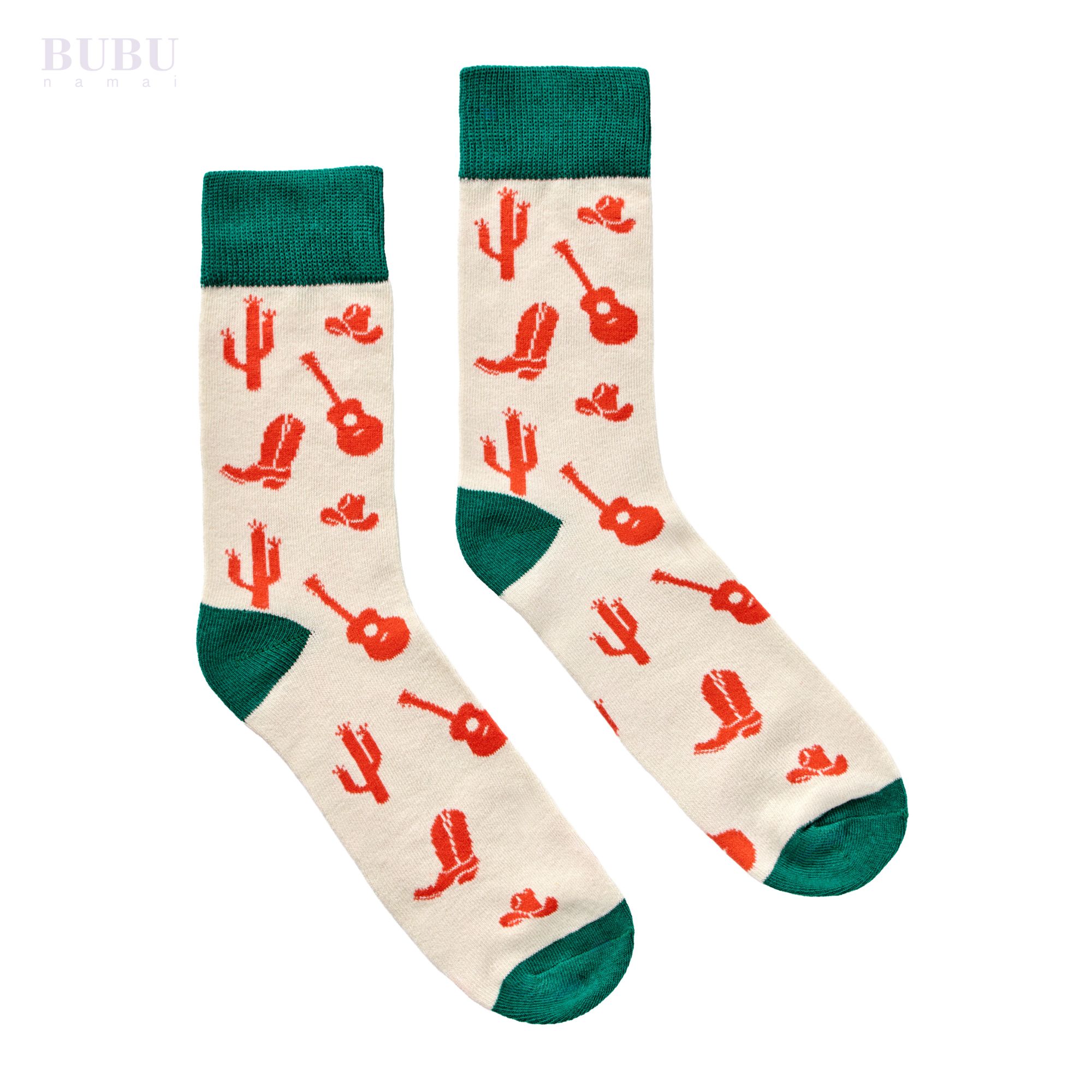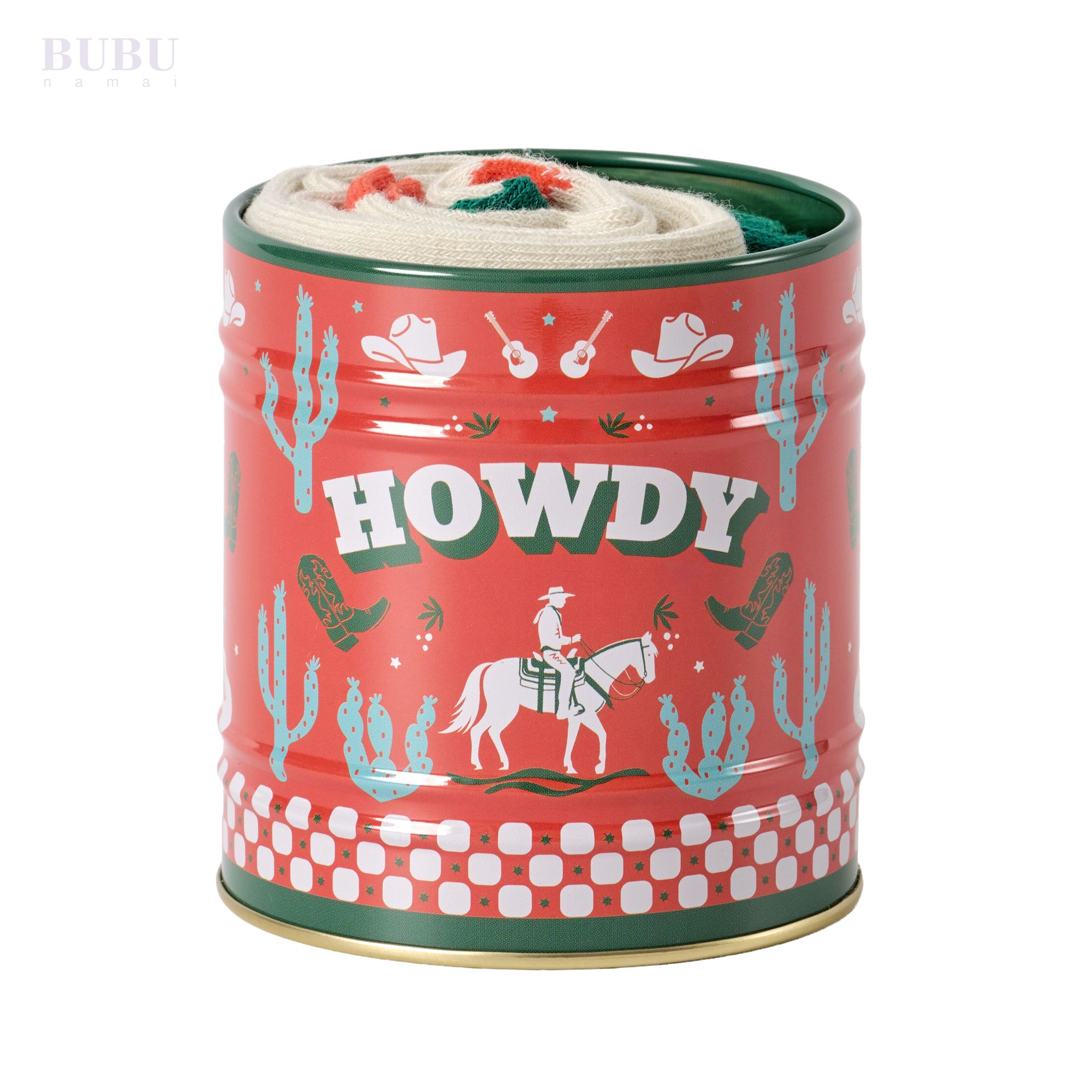 Originalus ir žaismingas kojinių rinkinys skardinėje, įkvėptas kaubojiškos nuotaikos. Viduje rasite minkštas, patogias kojines, dekoruotas kaktusų, gitarų, skrybėlių ir kitais Laukinių Vakarų motyvais, kurie suteikia išskirtinumo ir gero humoro kiekvienam įvaizdžiui.