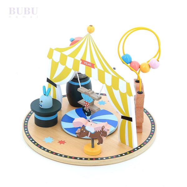 Šis spalvingas ir kupinas nuotykių lavinamasis žaislas kviečia mažuosius į nepakartojamą pasirodymą su 6 linksmomis veik lomis: šokliukais, akrobatais, spyruoklėmis, garsais ir optinėmis iliuzijomis.