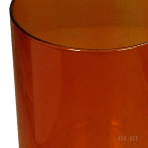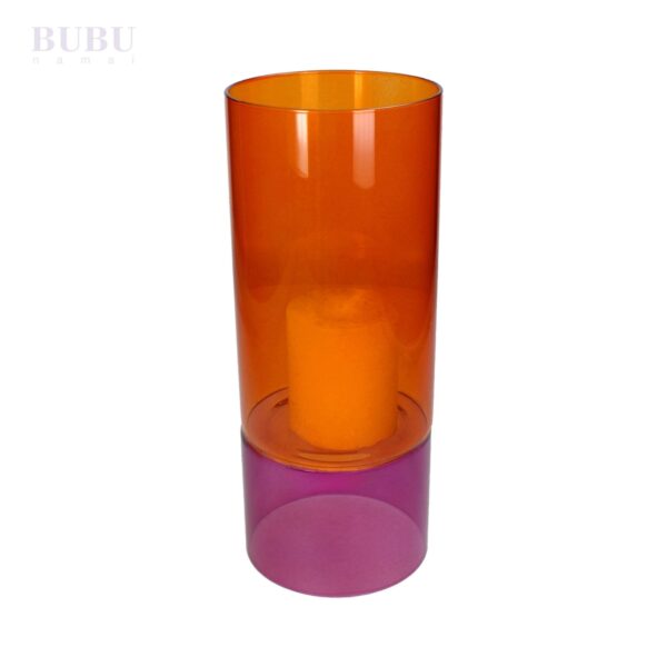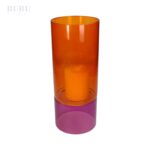 Išraiškinga aukšta stiklinė vaza traukia akį ryškiu spalvų perėjimu – oranžinė viršuje harmoningai susilieja su purpurine apačioje. Cilindro formos dizainas suteikia modernumo, o skaidrus stiklas leidžia šviesai subtiliai žaisti paviršiuje. Tai elegantiškas akcentas, tinkantis tiek gėlių kompozicijoms, tiek kaip savarankiška dekoracija, suteikianti interjerui energijos ir žaismingumo. Tokias ypatingas detales rasite Bubunamai parduotuvėje.
