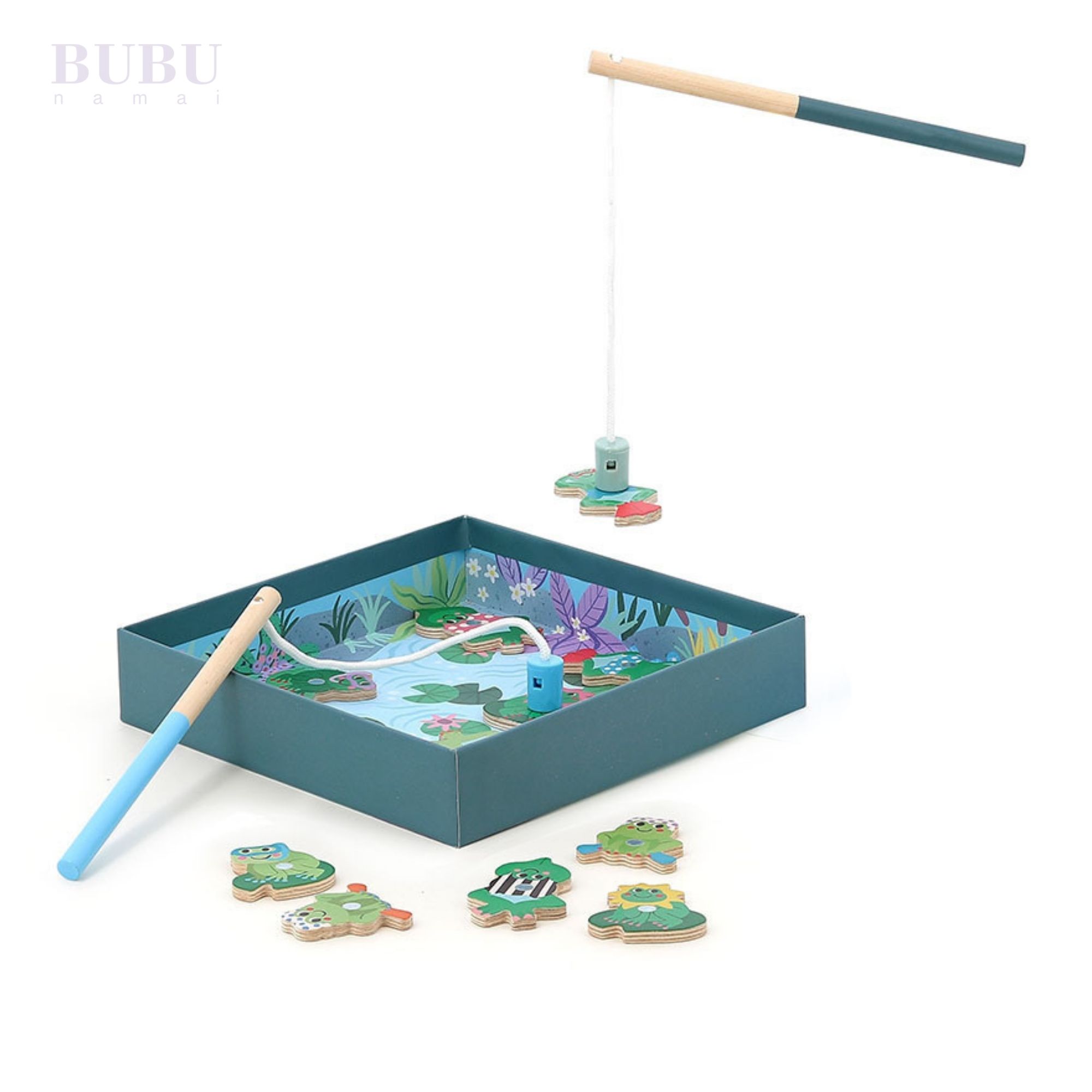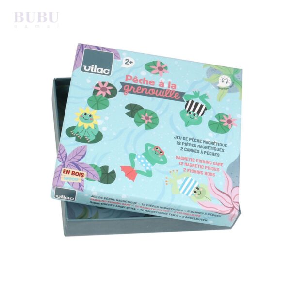 Šis žaismingas žaidimas, sukurtas dailininkės Michelle Carlslund, kviečia mažuosius pasinerti į smagią veiklą – sugaudyti visas 12 spalvingų medinių varlyčių naudojant medinę meškerę.