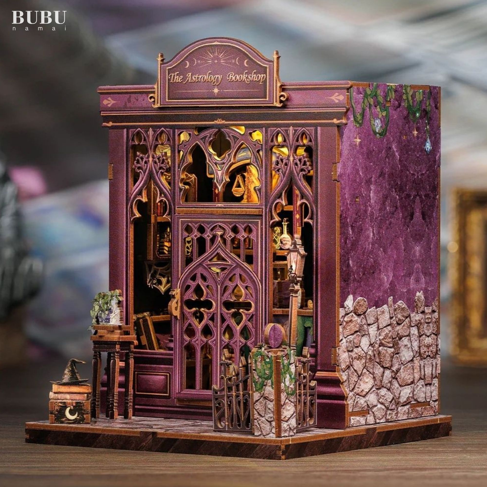 Suteikite savo knygų lentynai, darbo stalui ar bet kuriam lygaus paviršiaus kampeliui „Kelionės į mistikos gelmes“ kerų su šiuo intriguojančiu „Book Nook“ rinkiniu. Surinkite, dekoruokite ir apšvieskite savo asmeninę magišką šventovę! Didžiuokitės savo kūriniu – unikaliu knygų lentynos intarpu arba atskira miniatiūrine scena, puikiai tinkančia kiekvieno knygų mylėtojo namams.