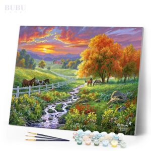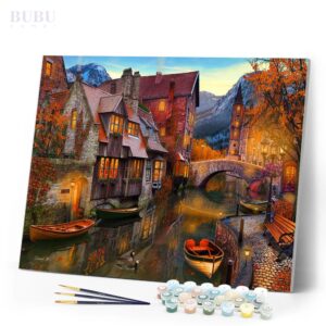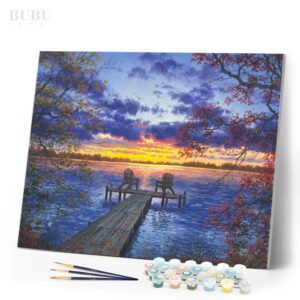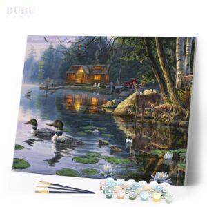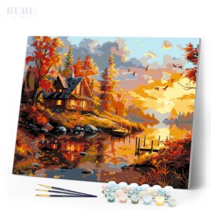 produkto kiekis: Tapyba pagal skaičius „Namelis prie ežero rudenį“, 40x50 cm