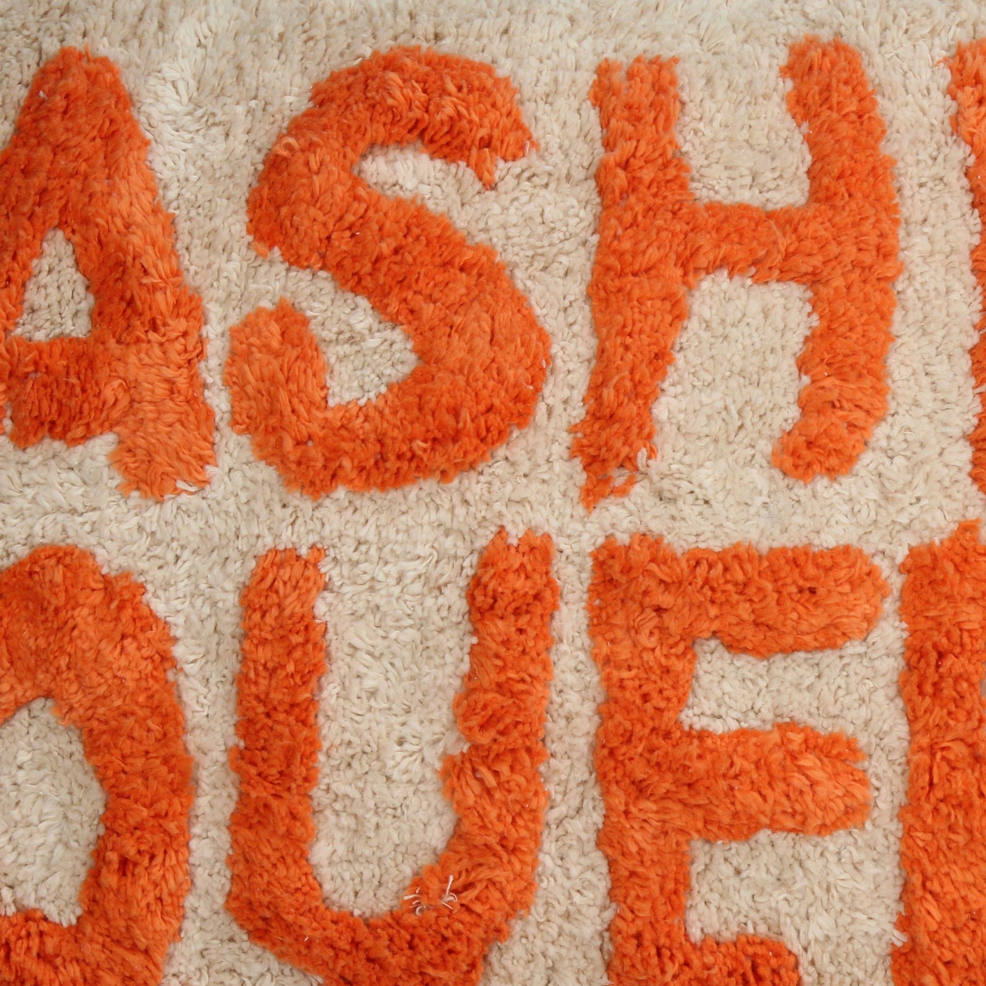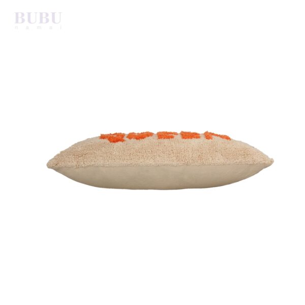 Stilinga medvilninė pagalvėlė – smėlio spalvos fone išryškėja ryškus oranžinis užrašas, suteikiantis interjerui žaismingumo ir modernumo. Stačiakampė forma (40×60 cm) puikiai tinka tiek svetainei, tiek miegamajam, o universalus dizainas dera prie įvairių stilių namų dekoro.