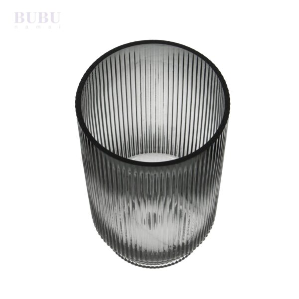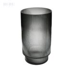 Išskirtinio dizaino pilko stiklo vaza – subtilus, bet akį traukiantis interjero akcentas. Vertikalūs dryžiai suteikia modernumo ir elegancijos, o neutralus stiklo atspalvis lengvai dera prie įvairaus stiliaus dekoro. Puikiai tinka tiek šviežioms, tiek džiovintoms gėlių kompozicijoms ar minimalistiniam interjerui.