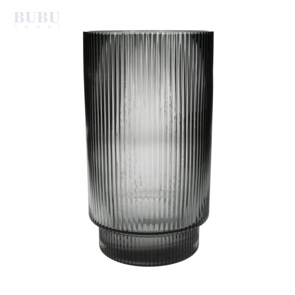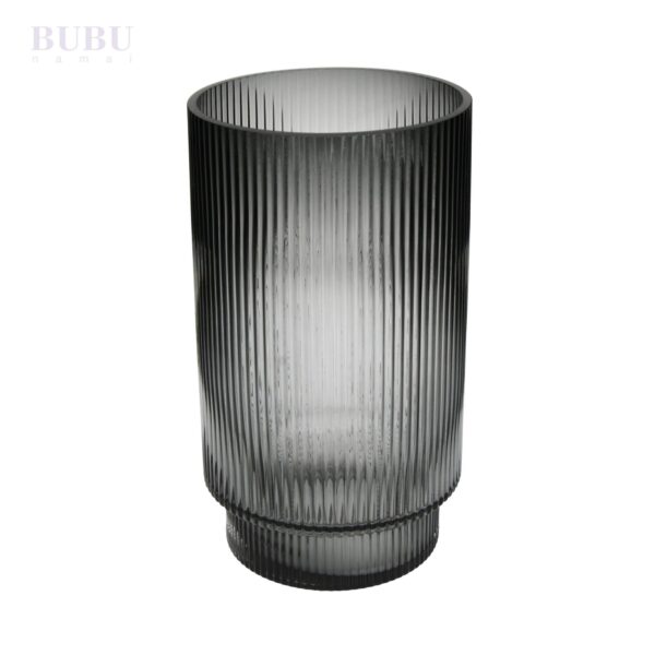Pilka stiklo vaza su juostelėmis, 16x16x28 cm