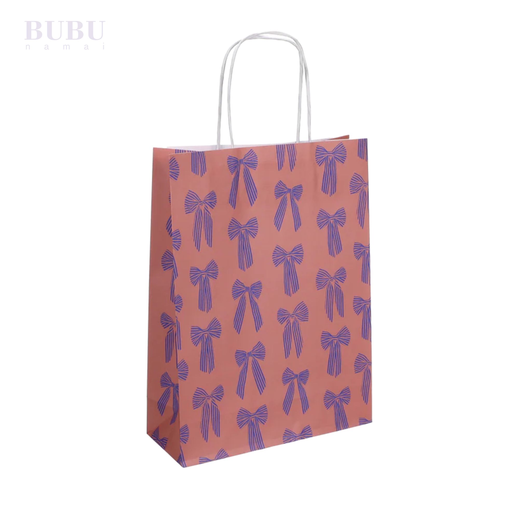 Žaismingas rožinės spalvos popierinis dovanų maišelis su mėlynais kaspinėlių raštais – puikus pasirinkimas dovanoms, kurios turi skleisti švelnumą ir džiaugsmą. Pagamintas iš tvirto, kokybiško popieriaus su patogiomis rankenėlėmis, šis maišelis derina praktiškumą ir žavingą estetiką. Tinka gimtadieniams, šventėms, vaikų dovanoms ar bet kokiai progai, kai norisi suteikti šypseną.