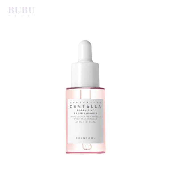 „SKIN1004 Madagascar Centella Poremizing Fresh Ampoule“ – gaivinanti veido ampulė, skirta porų priežiūrai, odos drėkinimui ir stangrinimui. Formulėje yra Centella Asiatica ekstraktas ir alavijo ekstraktas, kurie ramina ir drėkina odą, mažina sudirgimą. Peptidų kompleksas (įskaitant acetyl hexapeptide, tripeptide ir copper peptide) padeda didinti odos elastingumą, stangrumą bei mažinti smulkias raukšleles. Priemonė pasižymi lengva tekstūra, kuri greitai susigeria ir suteikia gaivumo pojūtį, puikiai tinka mišriai bei riebiai odai.