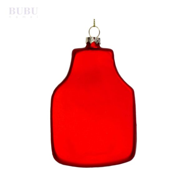 Žaismingas stiklinis ornamentas prijuostės formos su užrašu „BBQ Master“ taps puikia dovana ir šventiniu akcentu tikram grilio entuziastui. Ryškios raudonos, žalios ir auksinės spalvų derinys, dekoruotas blizgiais akcentais, suteikia eglutei išskirtinumo bei nuotaikingumo. Tokius originalius kalėdinius papuošimus siūlo Bubunamai, kad jūsų šventės būtų dar įsimintinesnės.