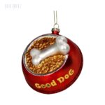 Stiklinis kalėdinis žaisliukas „Gero šuns dubenėlis“, 11 cm