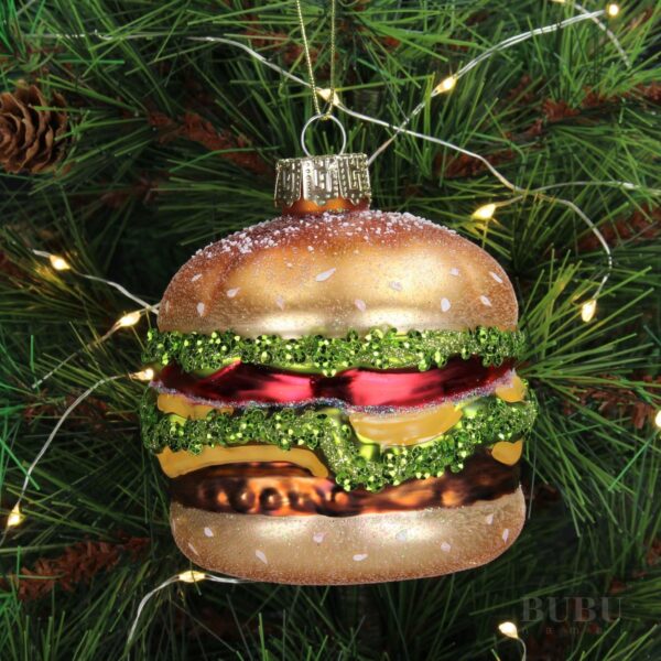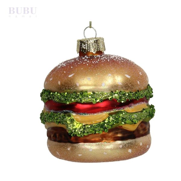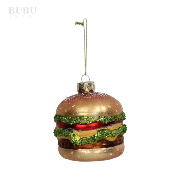 Stiklinis kalėdinis žaisliukas „Hamburgeris“, 9x9x10 cm