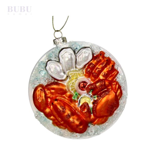 Stiklinis kalėdinis žaisliukas „Jūros gėrybių lėkštė“, 10 cm