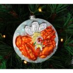 Unikalus ir žaismingas stiklinis Kalėdų eglutės žaisliukas, vaizduojantis prabangią jūros gėrybių lėkštę su krabais, austrėmis ir citrinos skiltelėmis. Ryškūs oranžiniai bei sidabriniai akcentai suteikia ornamentui išskirtinumo ir šventinės nuotaikos.