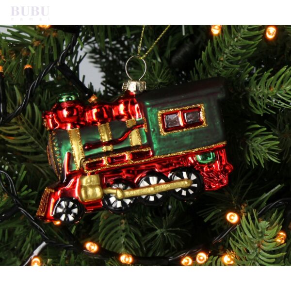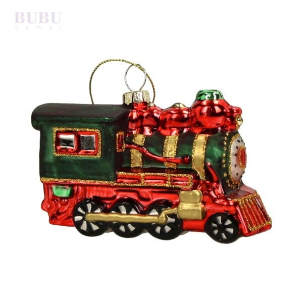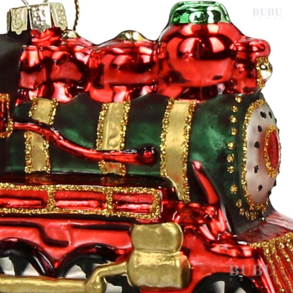 Spalvingas ir žaismingas stiklinis Kalėdų eglutės žaisliukas, vaizduojantis klasikinį traukinuką. Ryškūs raudonos, žalios ir auksinės spalvų deriniai suteikia jam šventiškumo bei nostalgijos. Tokia puošmena ne tik papuoš eglutę, bet ir pradžiugins tiek vaikus, tiek suaugusiuosius.
