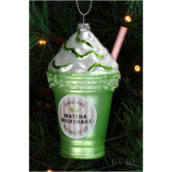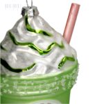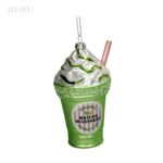Stiklinis kalėdinis žaisliukas „Matcha gėrimas“, 12.7 cm