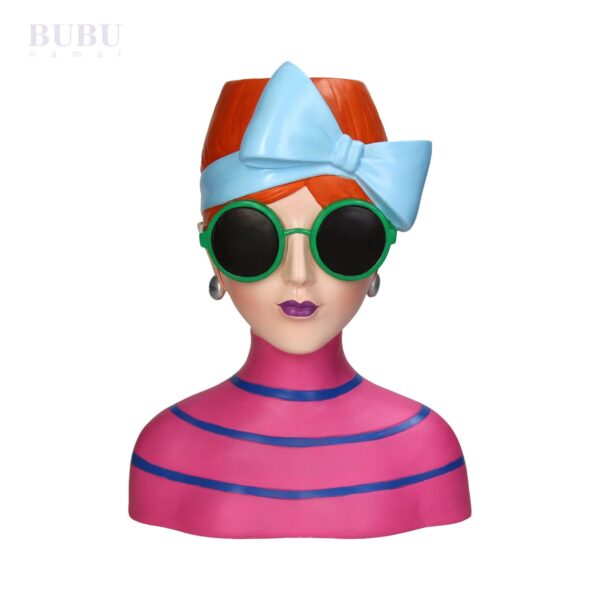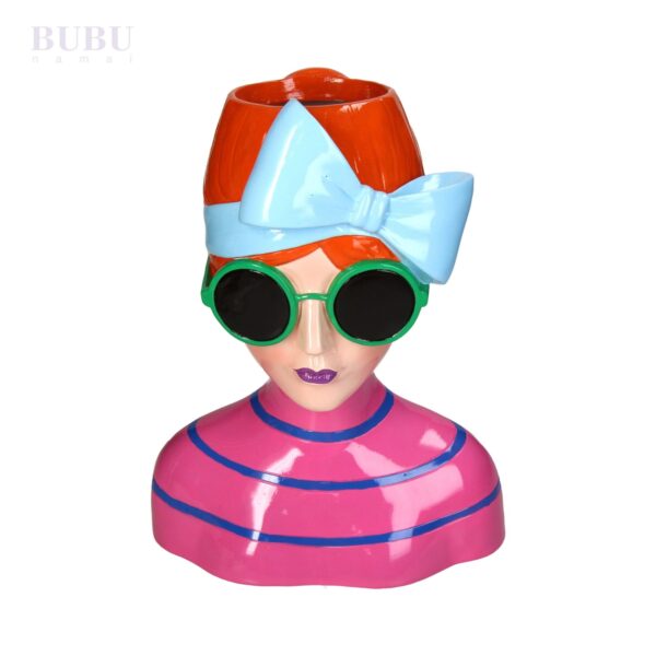 Išraiškinga ir spalvinga vaza, vaizduojanti madingą damą, taps originaliu jūsų interjero akcentu. Šis polirezino dekoro elementas puikiai tinka tiek gėlėms, tiek kaip savarankiška stilinga detalė. Ryškios spalvos ir žaismingas dizainas suteiks erdvei gyvumo, išskirtinumo ir šiuolaikiško charakterio.