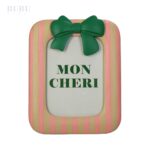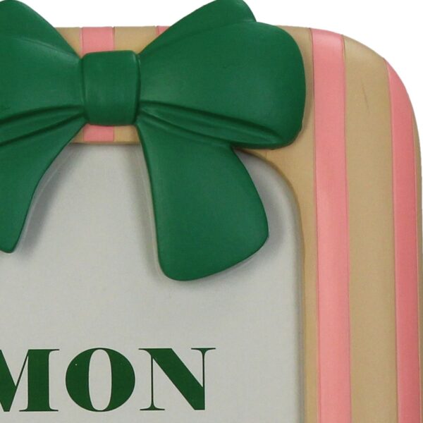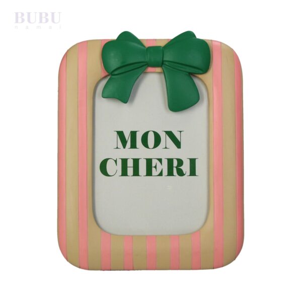 Linksmas ir spalvingas akcentas jūsų namams – nuotraukų rėmelis iš polirezino, dekoruotas rožinėmis ir kreminėmis juostelėmis bei ryškiu žaliu kaspinu viršuje. Šis 13×18 cm dydžio rėmelis, kurį rasite Bubunamai parduotuvėje, suteikia interjerui žaismingumo ir originalumo, o mėgstamiausias nuotraukas paverčia stilinga dekoro detale.
