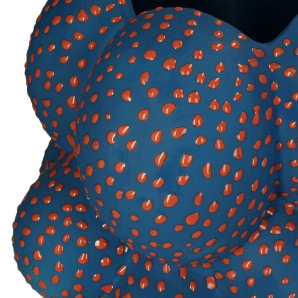 Ši išraiškinga akmens masės vaza traukia akį burbulų formos dizainu ir ryškia spalvų kombinacija. Giliai mėlynas paviršius, dekoruotas raudonais taškeliais, suteikia žaismingumo bei dinamikos. Tai ne tik praktiška gėlių vaza, bet ir savarankiška dekoracija, galinti tapti pagrindiniu interjero akcentu. Tokius originalius sprendimus savo namams atrasite Bubunamai parduotuvėje.