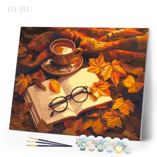 Sukurkite jaukią rudens atmosferą kartu su Bubunamai parduotuvės tapybos pagal skaičius rinkiniu. Ant drobės – šilta arbatos puodelio akimirka, atversta knyga ir akiniai tarp auksinių rudens lapų. Šis rinkinys leis ne tik atsipalaiduoti, bet ir pasinerti į kūrybos procesą, o galiausiai pasigaminti unikalų meno kūrinį, kuris taps išskirtine jūsų namų dekoracija. Puikus pasirinkimas kūrybingam laisvalaikiui arba dovana mylimam žmogui!