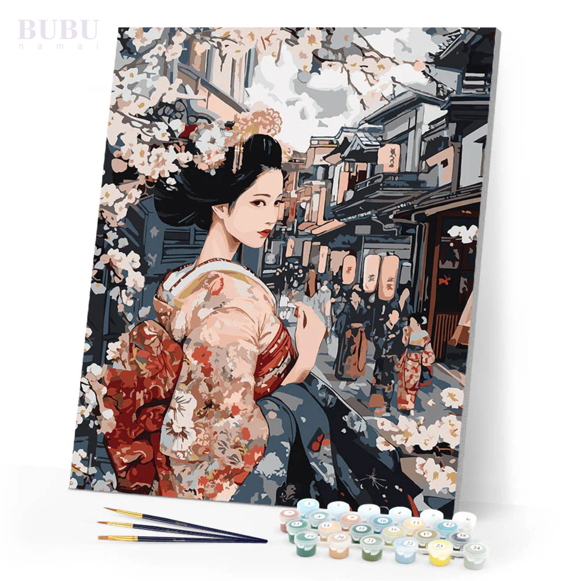 Atraskite japoniško grožio pasaulį su šiuo tapybos pagal skaičius rinkiniu. Ant drobės – elegantiška geiša tradiciniu kimono, apsupta žydinčių sakurų ir senovinio miesto gatvių. Rinkinys leis atsipalaiduoti, mėgautis kūrybos procesu ir pasigaminti unikalų meno kūrinį savo namams. Puiki dovana kūrybingam laisvalaikiui arba stilinga dekoracija jūsų interjerui!