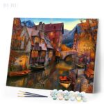 Atraskite rudeninės ramybės grožį su šiuo nuostabiu paveikslu! Šilta spalvų paletė, senamiesčio architektūra, kalnai tolumoje ir tyliai plūduriuojančios valtelės sukuria pasakišką rudens vakaro atmosferą. Tapyba pagal skaičius iš Bubunamai leis jums žingsnis po žingsnio atkurti šį jaukų peizažą net be jokių tapybos įgūdžių.