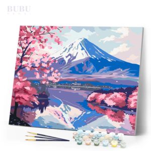 Tapyba pagal skaičius „Fudžio kalnas su žydinčiomis vyšniomis“, 40×50 cm
