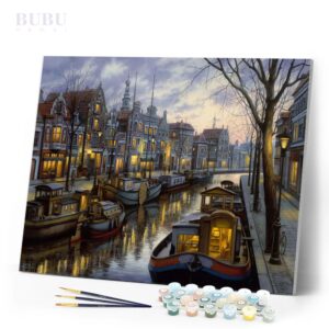 Tapyba pagal skaičius „Gyvenimas prie kanalo“, 40×50 cm