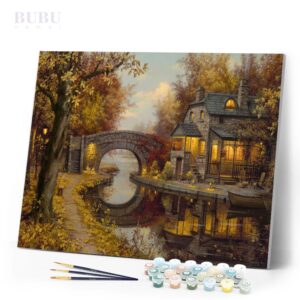 Tapyba pagal skaičius „Namelis prie ežero rudenį“, 40×50 cm