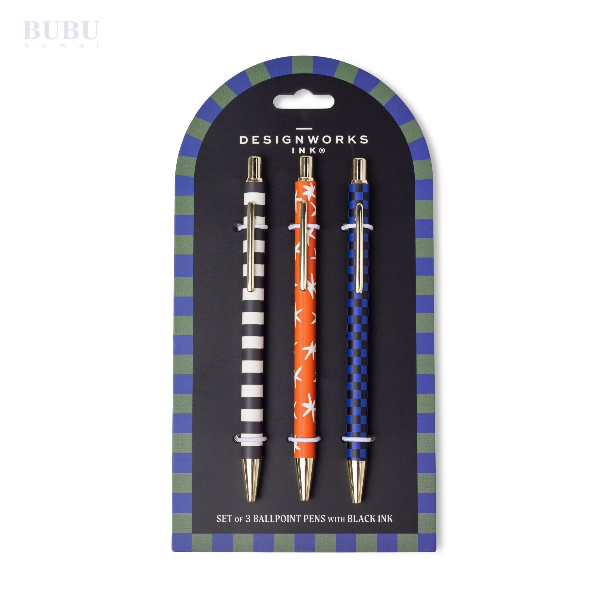 Tušinukai dekoruoti ranka pieštais raštais – dryžiais, žvaigždėmis ir grafiniu raštu – papildytais subtiliomis auksinėmis detalėmis. Jie ne tik patogūs naudoti, bet ir tampa stilingu darbo stalo akcentu. Puikiai dera su Bubunamai užrašų knygelėmis, bloknotais ir laikymo dėžutėmis.