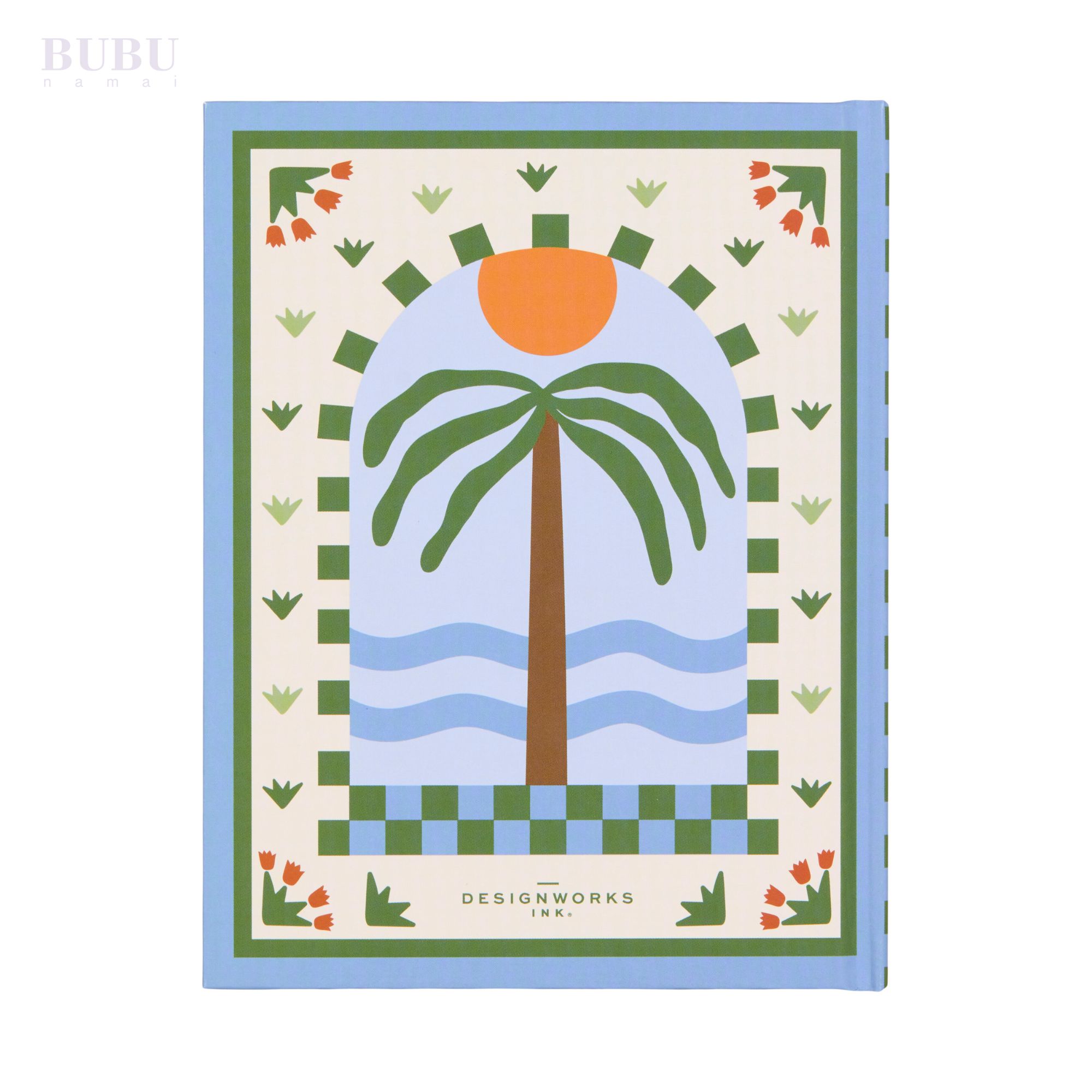 Ši užrašinė alsuoja vasaros nuotaika ir Viduržemio jūros įkvėptu dizainu. Viršelį puošia stilizuota palmė, saulėlydis ir bangos, apsuptos dekoratyviais rėmeliais bei subtiliomis gėlių detalėmis. Švelnūs mėlyni, žali ir persikiniai tonai kuria ramią, įkvepiančią atmosferą rašymui.