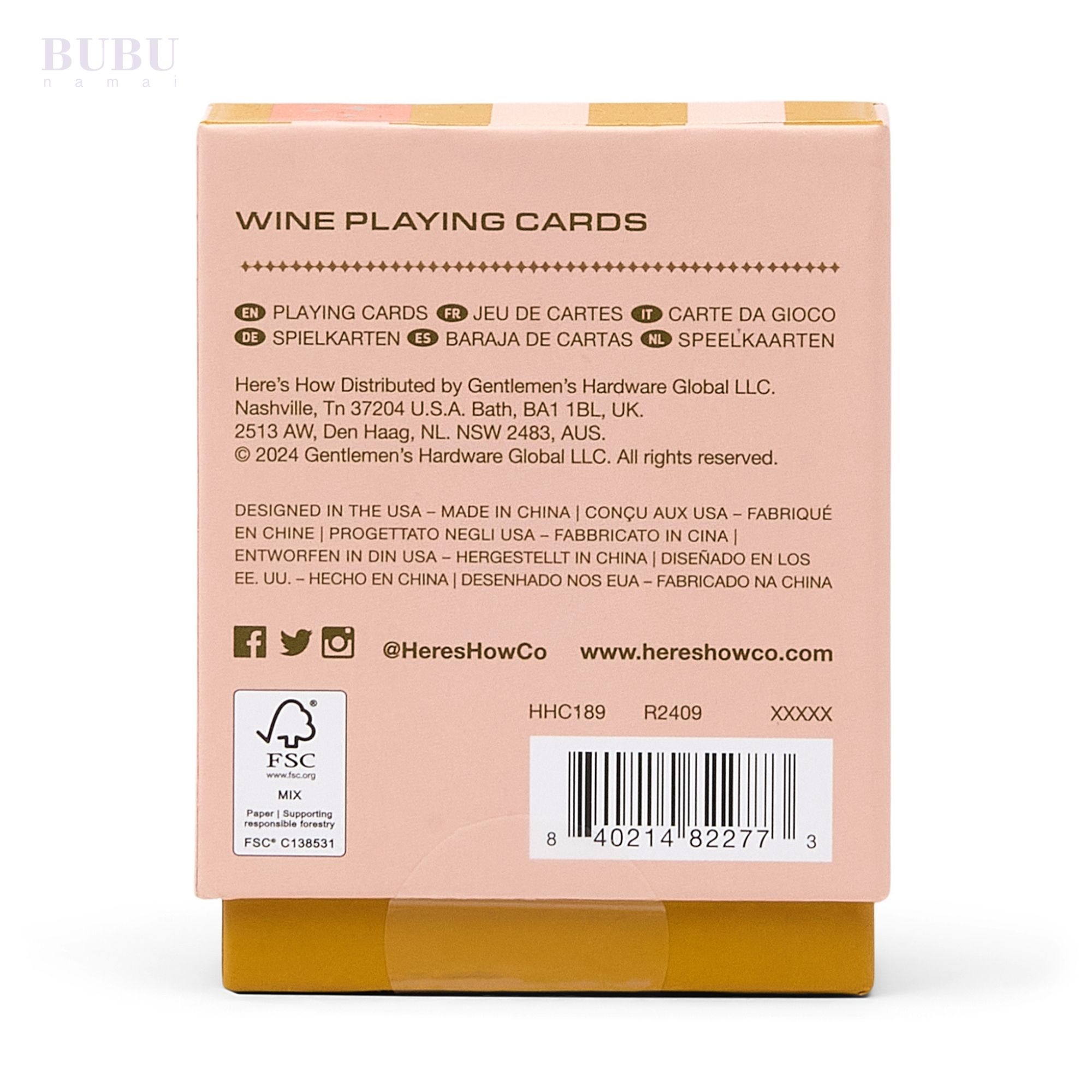 Šis stilingas vyno tematikos žaidimo kortų rinkinys – puikus pasirinkimas jaukiems vakarams, vakarėliams ar dovanai vyno mėgėjams.