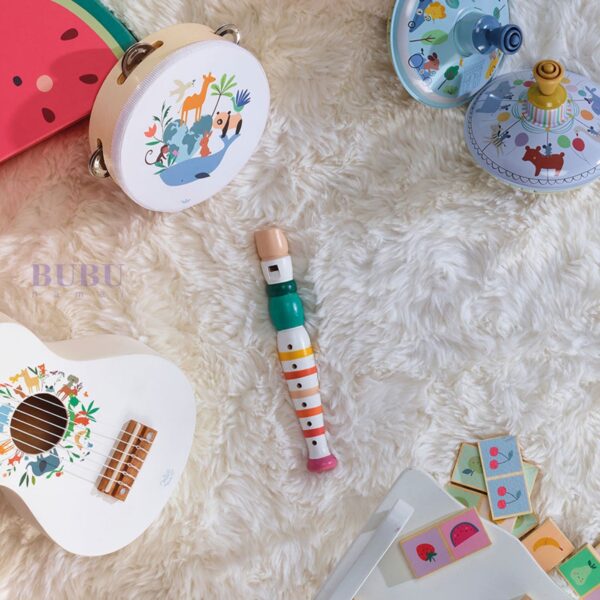 Pirmyn į muzikos pasaulį! Tegul prasideda koncertas! Atraskite šią žavią medinę fleitą, puikiai tinkančią vaikams nuo 3 metų, norintiems pažinti garsus ir ritmus.